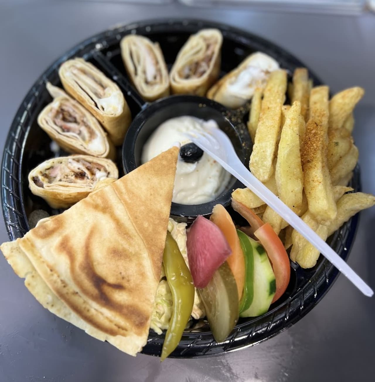 Desole je suis tres tres des?u lmakla vraii machi bnina o la cantite te3 chwarma zero fetiita chwarma o bezzf friit o le pain te3 chwarma en derait carton ?